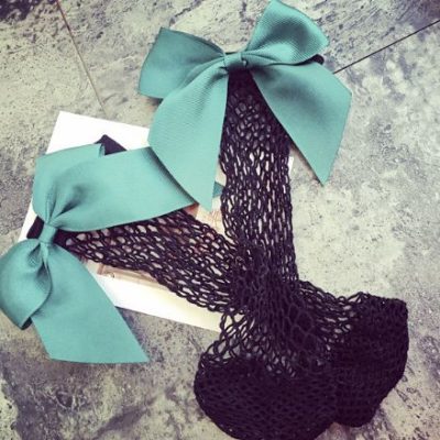 Στο πάνω μέρος της κάλτσας έχει φαρδιά δαντέλα με φλοράλ μοτίβο.