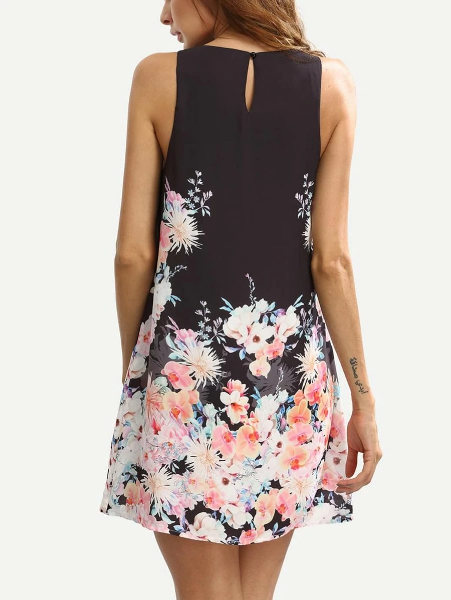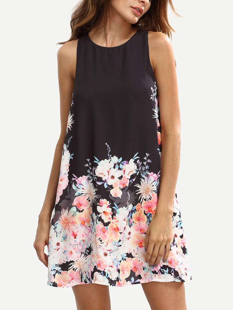 Όμορφο μαύρο κοντό φόρεμα με λουλούδια